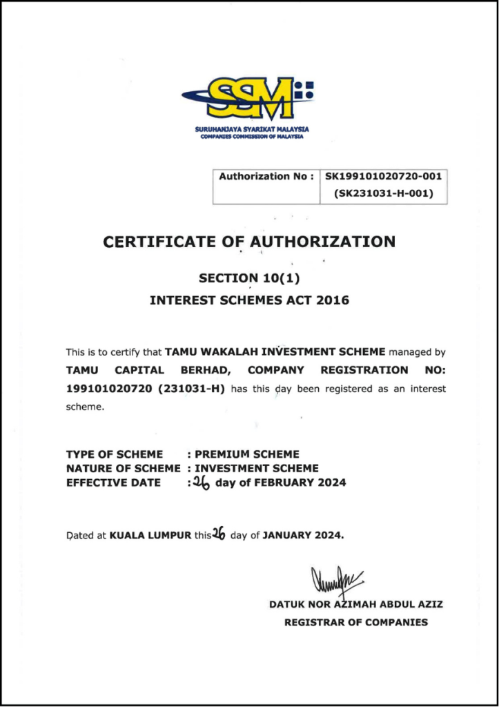 We are Malaysia’s first financial investment scheme registered under the Interest Scheme Act 2016 regulated by Suruhanjaya Syarikat Malaysia. We offer innovative financial solutions that align with Shariah principles.